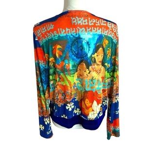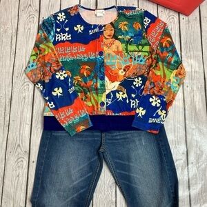 A bold and colorful conversation starter when wearing this great retro cardigan.