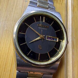 Vintage Citizen CQ Two Tone Day-Date Watch 8101-T15588KT, 34mm - Not Running