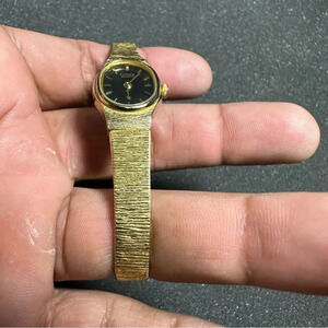 Vintage Citizen Ladies Quartz Watch Gold Tone Oval Face (5920-S49615) Working shows signs of wear such as scratches on case band and crystal as well as discoloration of gold tone see pictures for reference