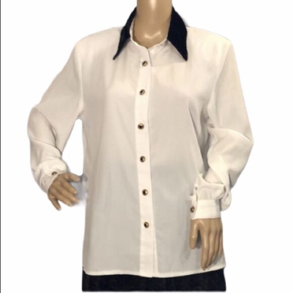 Button down white shirt with black velvet collar