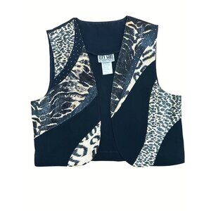 Vintage City Girl By Nancy Bolen Animal Print Vest Size 8 Black Gold Made In USA