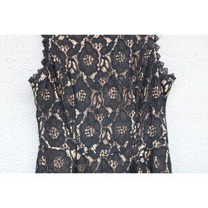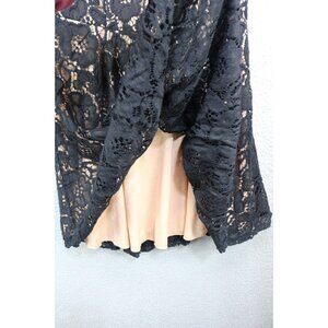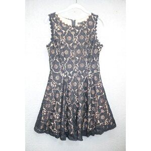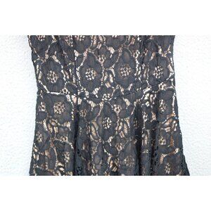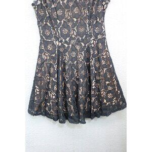 This is a City Triangle Vintage Black Lace Sheer Fit & Flare Dress that is a size 9. It is lined and is 70% Cotton and 30% Nylon. Laying flat, it measures: Armpit to armpit-18" and the Length is 34". It zips in the back. Very pretty. In great condition.