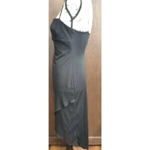 Vintage City Triangles Asymmetric Slip Dress Size Medium Black Y2K 90s Cami LBD