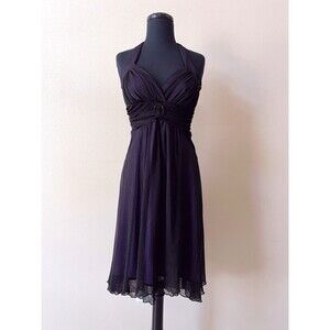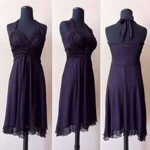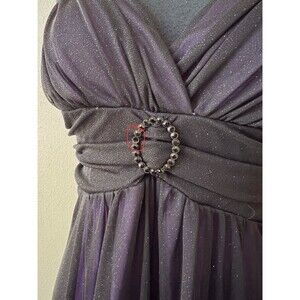 Vintage City Triangles Prom Halter Layer Dress Large Glitter Black Mesh Lace Purple Asymmetrical Hem Y2K