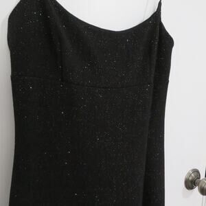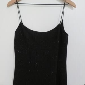 Vintage City Triangles Womens Sz L Black Glitter Strappy Long Maxi Dress Y2K