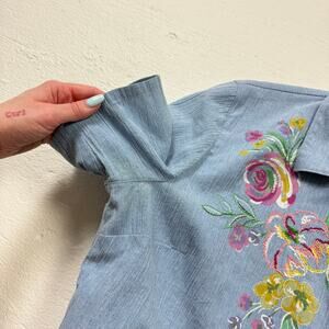 Vintage CityBlues By Koret Floral Embroidered Chambray Button Up Top, Size PL