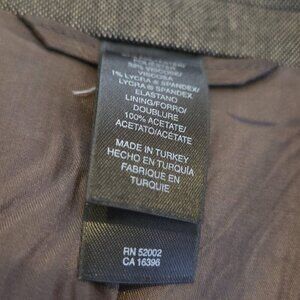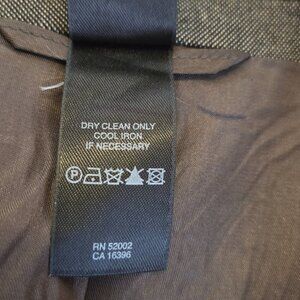 This Men's Dusty Brown Blazer by Liz Claiborne is a stylish and versatile career sport coat perfect for formal occasions like weddings or business events. The blazer features a classic 3-button front, a ventless design, and a solid grey color with a brown accent. Made from a blend of polyester and wool, it is lined with acetate for a luxurious feel. The vintage style and 90s sports theme give it a unique and on-trend look, ideal for men looking for a sophisticated yet comfortable option in their wardrobe.