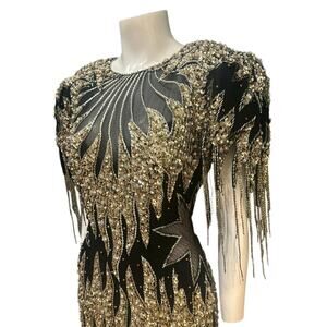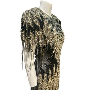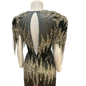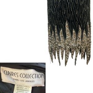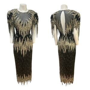 Vintage Claire’s Collection Sequin Beaded Evening Gown Fringe Formal Dress S -