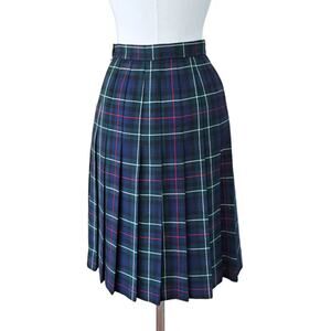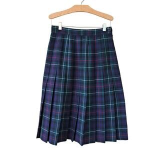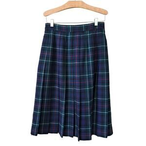 Vintage Clan Laird Scottish Tartan Plaid Pleated Wool Skirt US 6 Navy Green