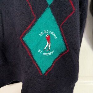 Vintage Clan Royal Mens 100% Lambswool Blue Argyle Diamond The Old Course St Andrews Golf Sweater Size XL