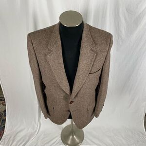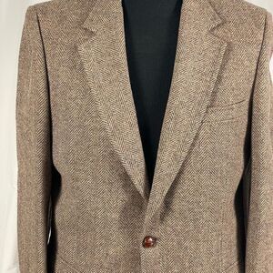 Brown 100% Wool Herringbone Vintage Claridge Sports Coat With Suede Elbow Patches.
