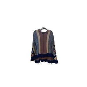 Vintage Classic Creations California Boho western Fringe Knit Poncho shawl Blue