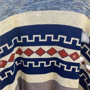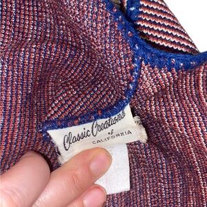 Vintage Classic Creations of California Boho western Fringe Knit Poncho Red Blue . approx 1960s/70s . good vintage condition .close up on images for condition