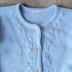 Vintage Classic Elements Blue Floral Crochet Embroidery Cardigan Sweater