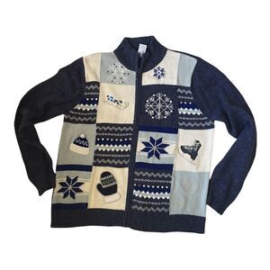 Vintage Classic Elements Christmas Front Zip Cardigan Sweater