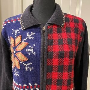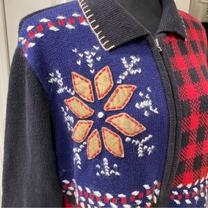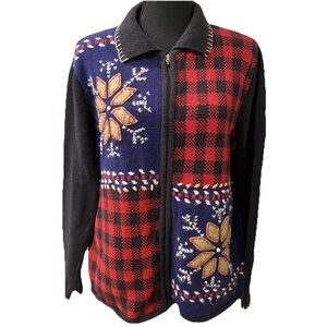 Vintage Classic Elements Holiday Christmas Snowflake Zip Up Sweater Women’s M
