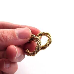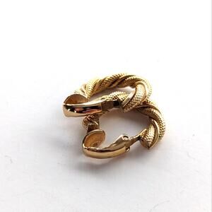 Vintage Classic Gold Tone Swirled Rope Textured Clip On Hoop Earrings