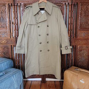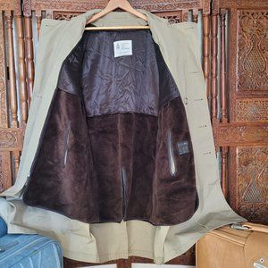 Classic vintage trench coat from London Fog made with Dacron Polyester and combed cotton. Includes a furry, detachable liner so you can make this an all weather coat: cozy for winter, light and breezy for spring. It's in beautiful condition.