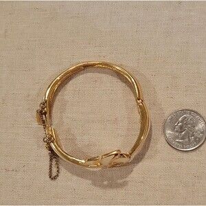 Vintage Signed Monet Gold Tone Cream Enameled Cuff Bangle Bracelet Knot Design
