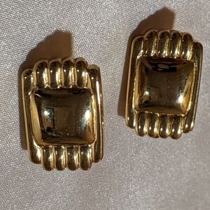 Vintage Classic Trifari Gold Tone Rectangular Shaped Clip On Earrings