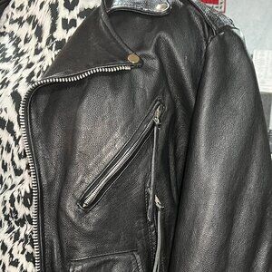 Vintage Classic Unisex Black Leather Motorcycle Jacket probably size Large