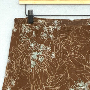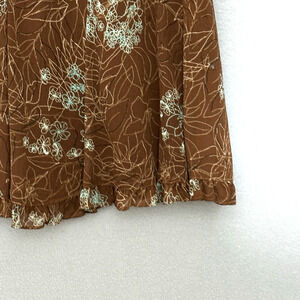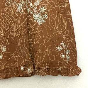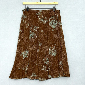 Vintage Classic Women Skirt 8P Brown Aqua Floral Chiffon Ruffle Midi Old Money