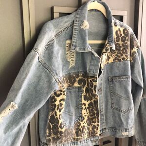 Vintage Classic jeans leopard and denim jean jacket size M/L