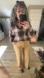 Vintage Classiques Entier 100% Silk Tan Burgundy Tartan Plaid Button Up Shirt Extra Large
