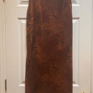Vintage Classiques Entier Brown Flower Shirt. In Good Pre Owned Condition. One Slight Flaw in Fabric that Blends in with the Pattern of the Skirt. See Photos. Lined. Side Kick Slit. Side Zip Closure. Floaty Light Feeling Fabric.