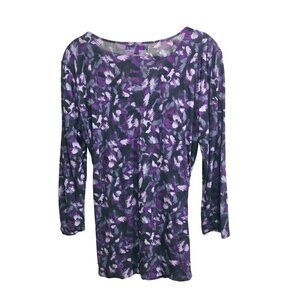 Vintage Classiques Entier Y2K 90s Ruched V-Neck Silk Blend Top Purple Black L