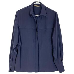 Vintage Claude Barthelemy Button Down Shirt Blouse Women Small Gray Wool Pockets