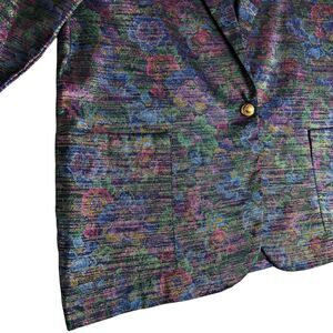 Vintage Claude Blazer Jacket 14 Floral Iridescent Shimmer Single Button 90s 80s