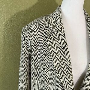 Vintage Claude Women's Size S Single Button Herringbone Blazer Jacket Black Cream