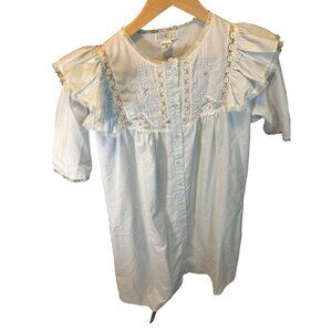 Vintage Claudia Barnes Nightgown Ruffled Lace Smocking Blue Button Front Size M