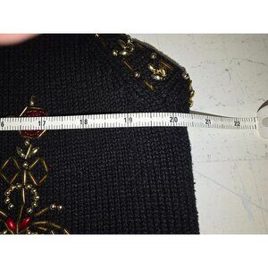 Vintage Claudia D. Black Knit Vest Red & Gold Bead Embellishments 1996 Holiday