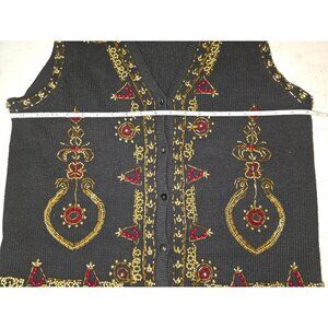 Vintage Beaded & Embroidered Sweater Vest Black Gold Red Ornate Retro L