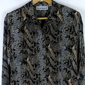Vintage Claudia Richard Snake Print Button Down Long Sleeve Top, Shoulder Pads snakeskin snake skin