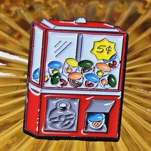 Vintage Claw Pop Up Toy Candy Gum Ball Red Machine Lapel Pin Brooch 5 Cent Retro