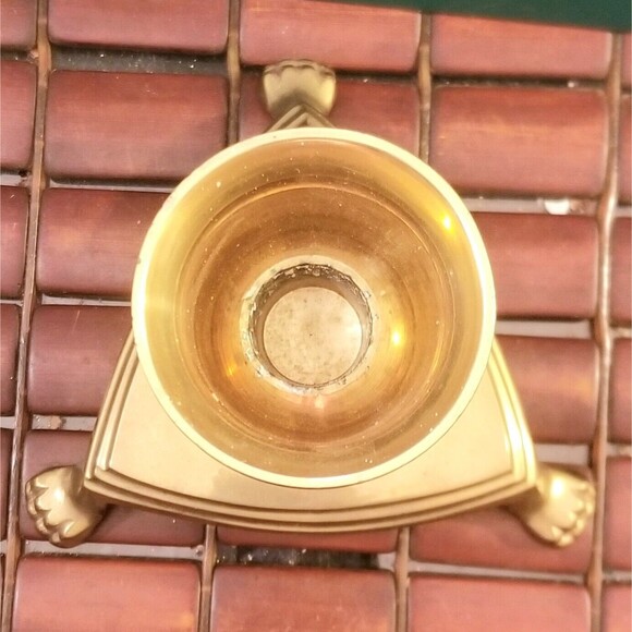 Vintage Clawfoot Candlestick Candle Holder Solid Brass Shield Shaped Base 5.25" High 5.5" Wide