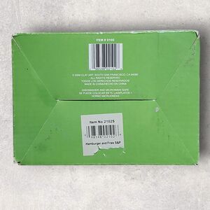 Vintage Clay Art Burger & Fries Salt & Pepper Shakers Set NOS Box Retro Kitchen