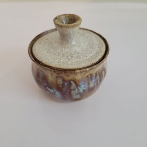 Vintage Clay Ceramic Mini Canister with Lid Salt Pot