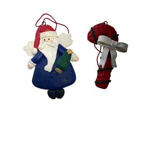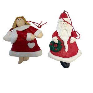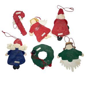Vintage Clay Christmas Ornament Set Santa Angel Wreath Candy Cane 6pcs
