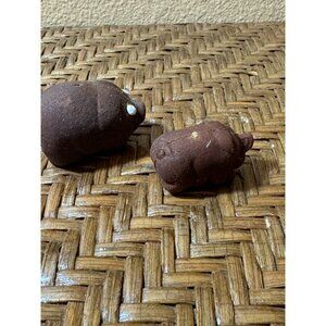 Vintage Clay Pig Figurines Set Of 2 - Handcrafted Rustic Miniature Sculptures