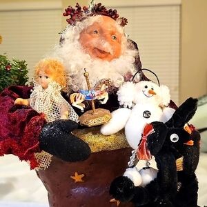 Vintage Clay Santa & Friends in a Boot w BELIEVE on Boot.