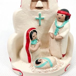 Vintage, Clay Sculpture, Native Southwest Nativity Ornament signed Teissedre