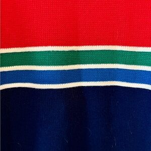 Vintage Claybrooke Mens Red Stripe Green & Blue Ski Sweater