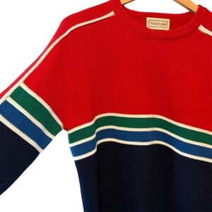 Vintage Claybrooke Mens Red Stripe Green & Blue Ski Sweater, size Medium