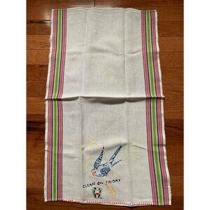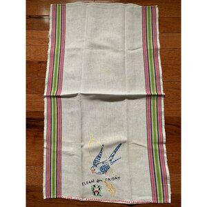 Vintage Clean on Friday Hand Embroidered Bird on Swing Hand Towel