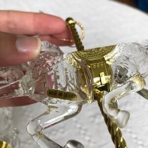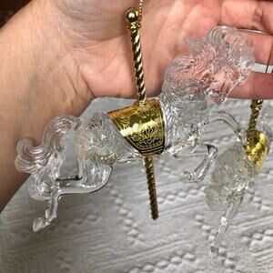 π Glass-look acrylic carousel horses with ornate gold-tone saddles & pole