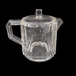 Vintage Clear Acrylic Faceted Sugar Bowl W/Spoon and Creamer NOS.